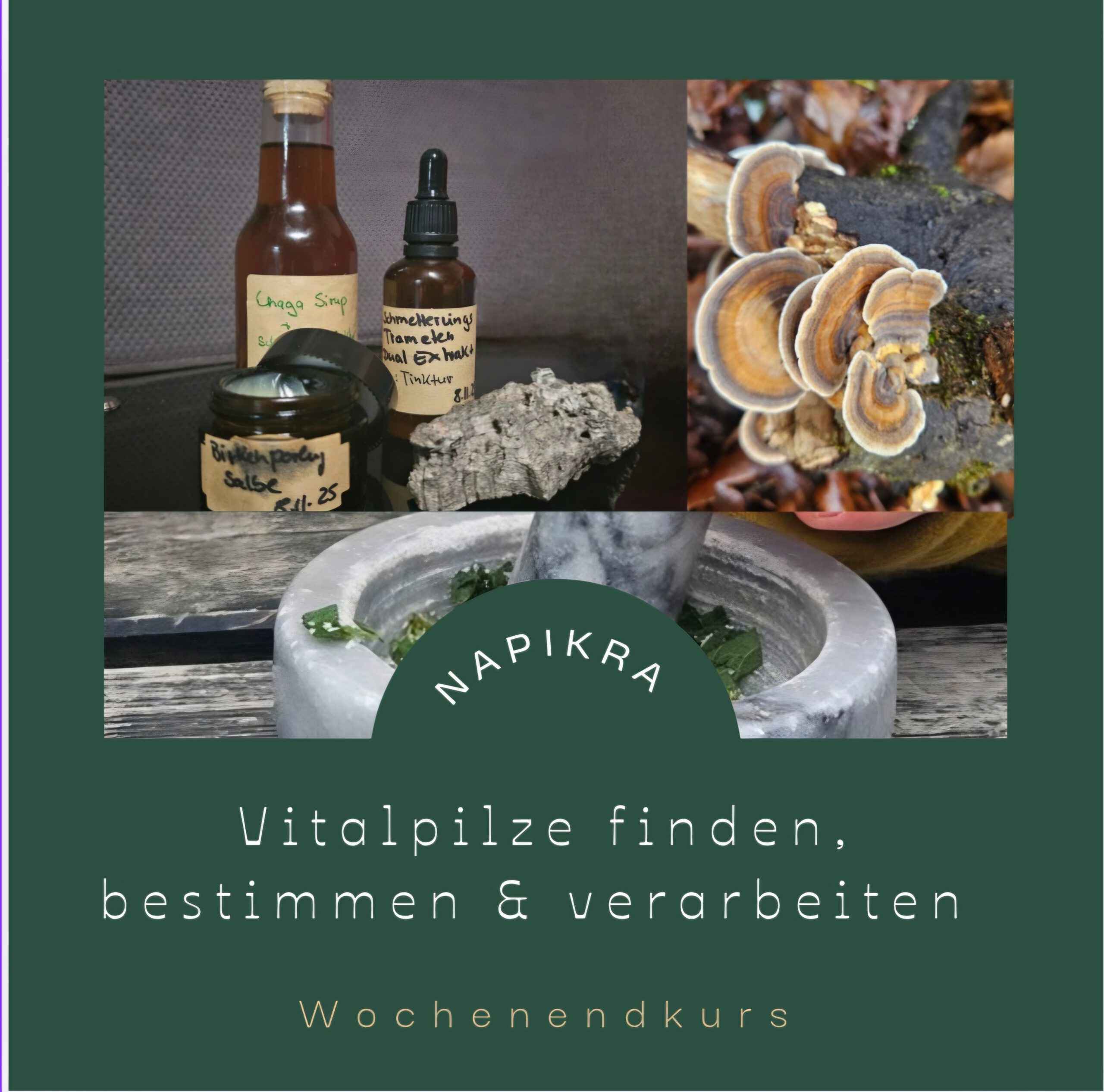 Tauche ein in die Welt der Vitalpilze: Bestimmung, verantwortungsvolles Sammeln und traditionelle Verarbeitungsmethoden.