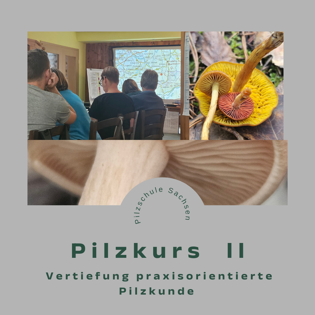 Der Pilzkurs II, Theorie und Praxis zu einem klar strukturierten Lernablauf. Jeder Kurstag besteht aus einem theoretischen Teil am Vormittag und einer praxisorientierten Exkursion am Nachmittag.